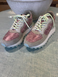 Crafted with a striking faux snakeskin texture in vibrant pink tones, these sneakers are the perfect blend of trendy and timeless. The design is elevated by light blue serrated soles that add a playful pop of contrast while providing excellent traction and comfort.