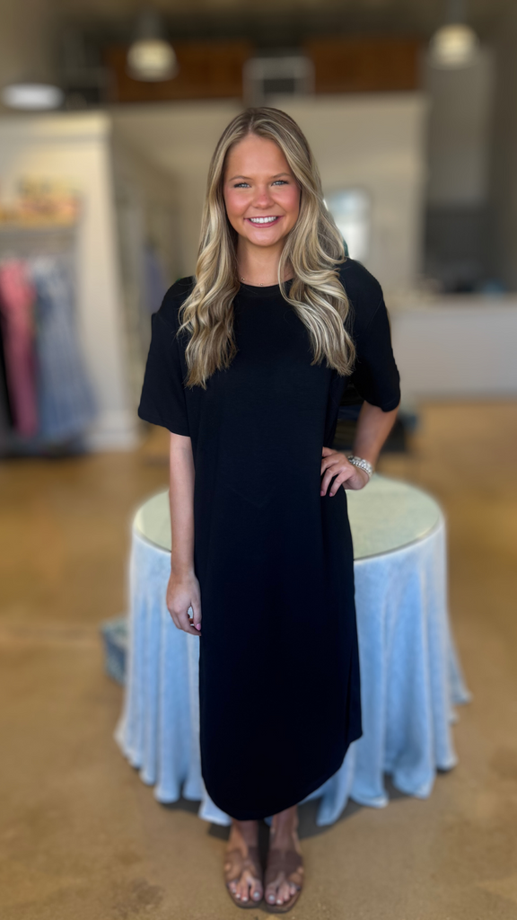 Details: - Round neck - Short sleeves - Midi length - Scuba modal fabrication