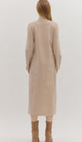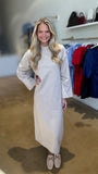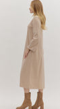solid mock neck long sleeve knit midi dress. Medium weight.