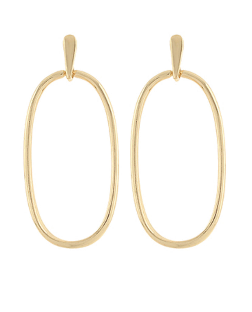 • Gold Oval Drop Earrings