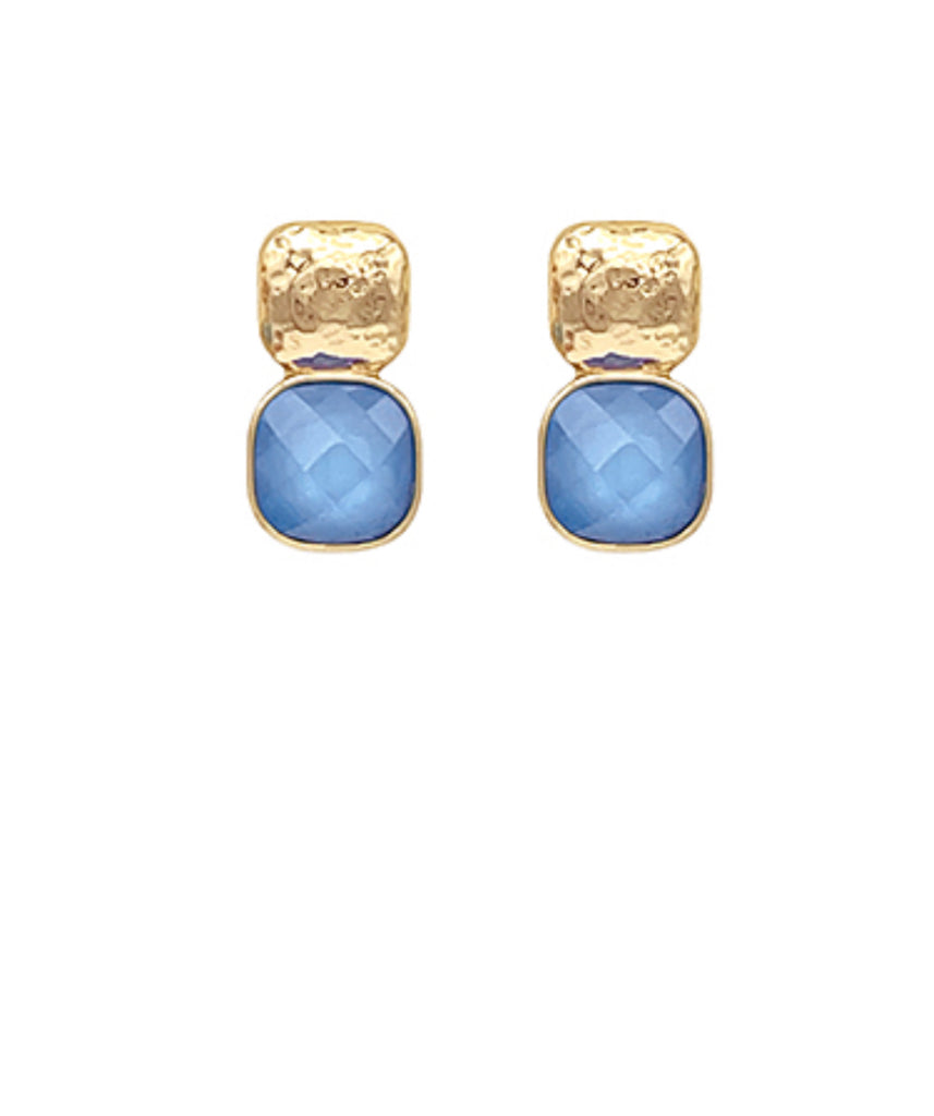 Stone & Metal Doule Square Earrings