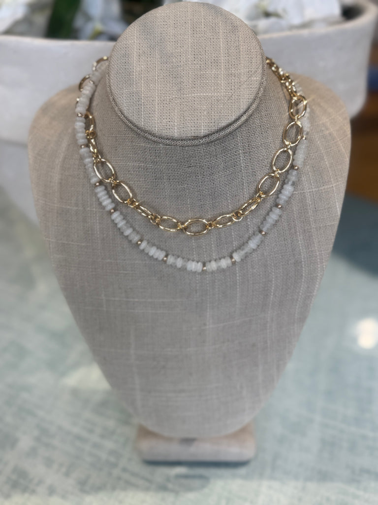• White bead layered necklace