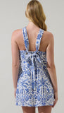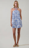 Blue tropical halter dress
